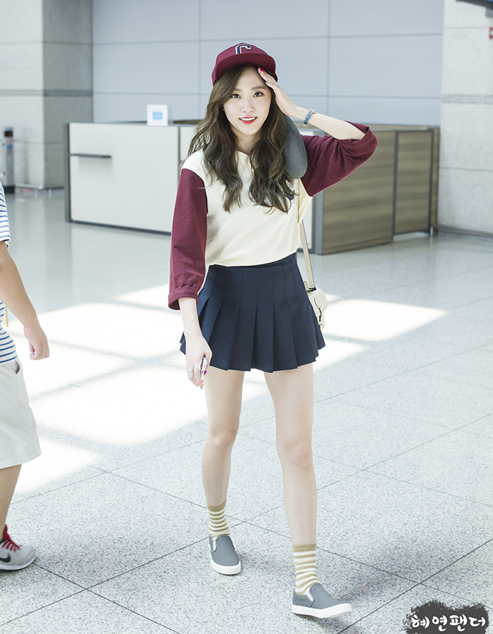 | Trong khi, Haeryung lại thích diện T-shirt dài tay đi kèm với chân váy tennis xếp ly. |