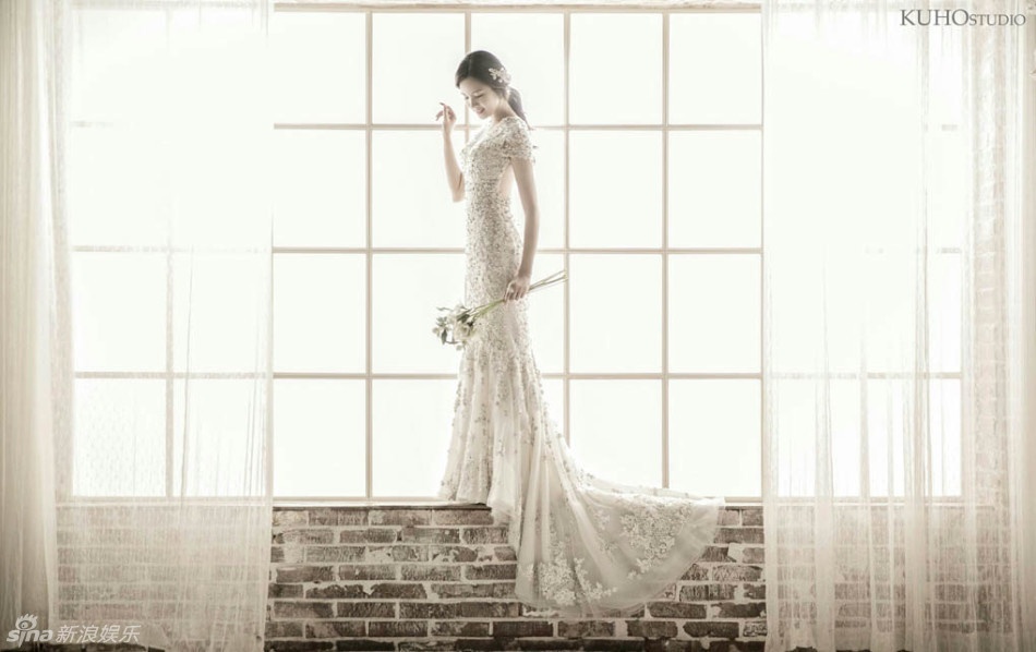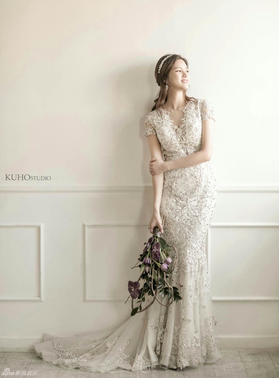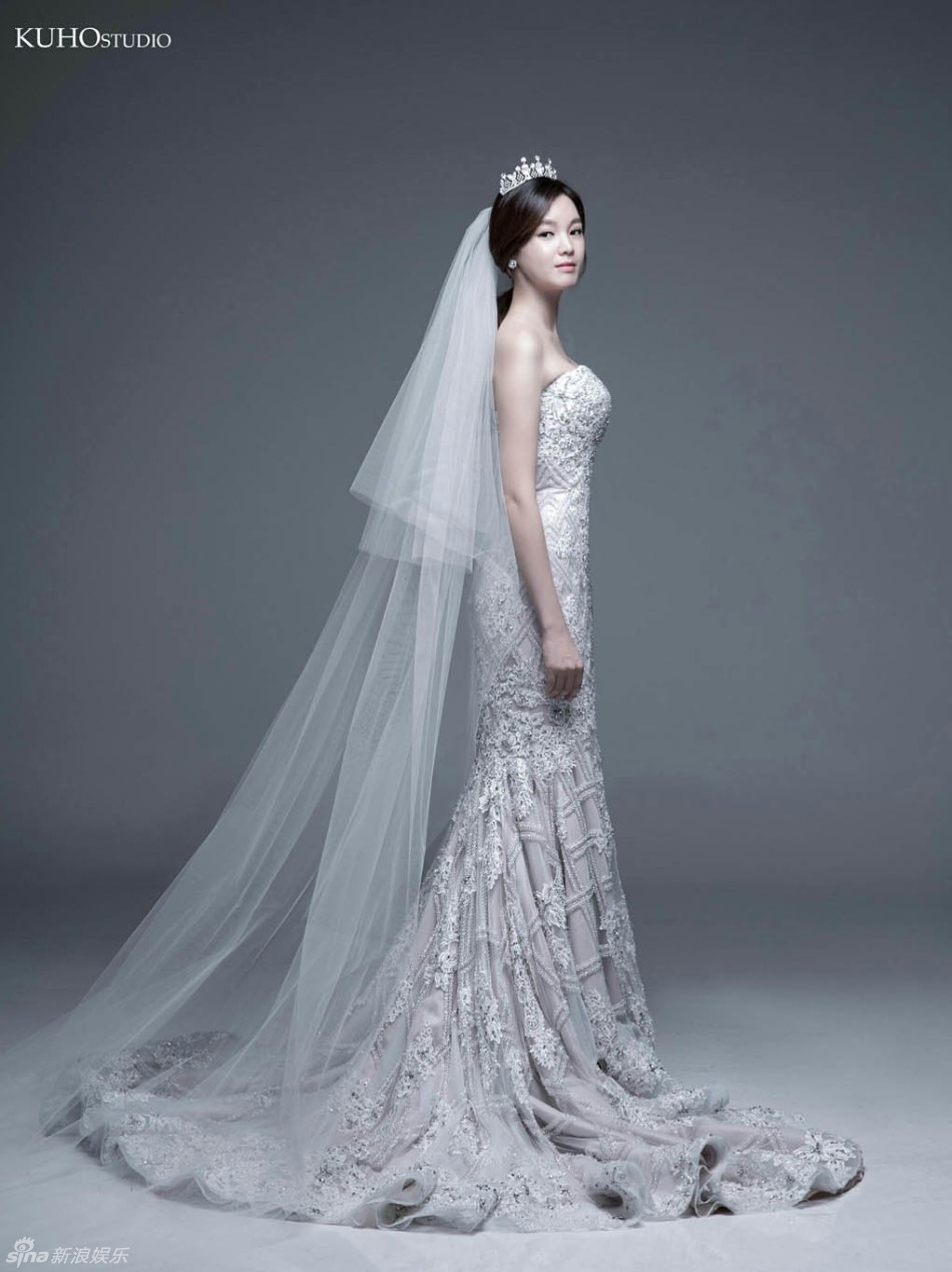 | Sina sáng 25/1 đăng tải loạt ảnh nữ diễn viên Jung Ga Eun dịu dàng trong trang phục cưới. Đây được coi là những mẫu váy cưới được ưa chuộng nhất. Nữ diễn viên Master's Sun duyên dáng với dáng váy đuôi cá, khoét ngực gợi cảm và đội vương miện. |