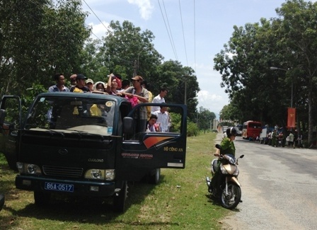 | Những chuyến xe đưa các phạm nhân được đặc xá từ khu trung tâm ra cổng trại giam Thủ Đức cách nhau khoảng 5km để người nhà đến đón về. |