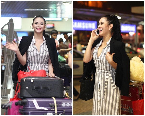 Hoa khôi thể thao Lại Hương Thảo năng động và hiện đại với sọc kẻ, áo vest khoác ngoài nhã nhặn khi cô có mặt tại Sài Gòn.