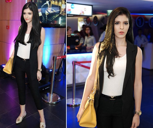 Andrea tham dự sự kiện với phong cách mùa thu thanh lịch, áo blazer không tay hợp xu hướng, kết hợp ăn ý với trang phục tông trắng đen.