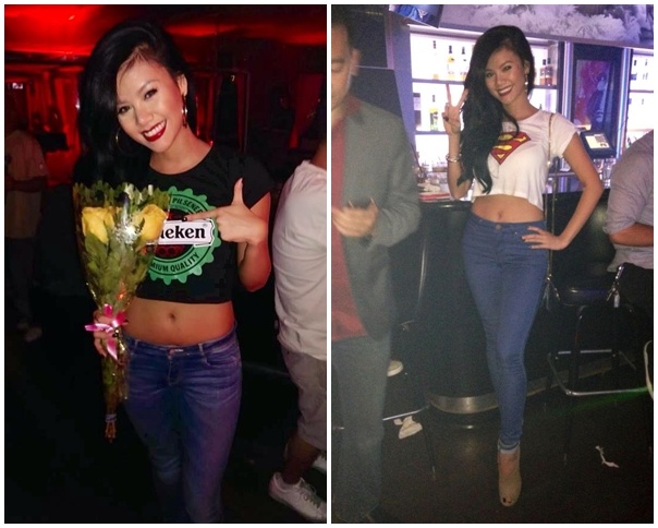 Nữ ca sĩ Phương Vy tinh nghịch với phong cách đời thường và khỏe khoắn, cách kết hợp áo thun croptop và quần jeans khoe vòng eo thon thả.