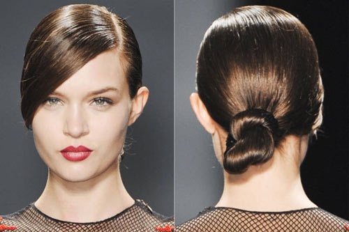 | Tín đồ chỉ mất vài phút để làm theo mẫu tóc búi mà thương hiệu Ralph Rucci sử dụng trong show diễn. |