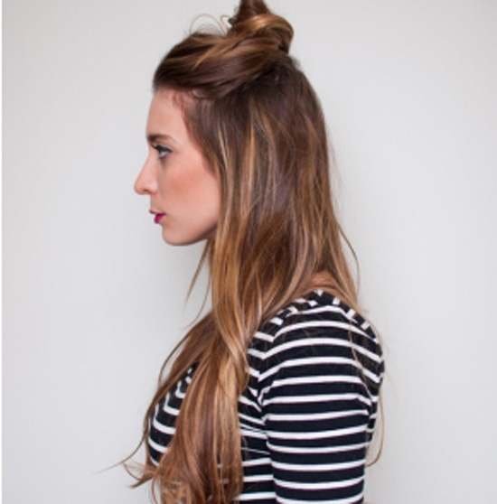 | Chia tóc ra làm hai nửa, nửa ở trên một phần còn dưới hai phần tóc. Dùng kẹp giữ cho phần tóc trên không bị bung ra. |