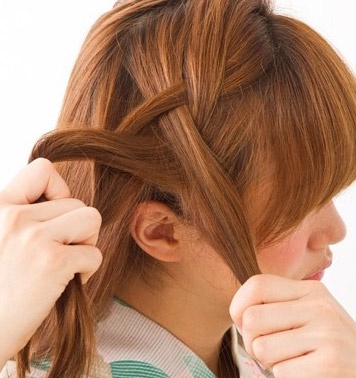 | Lấy một lọn tóc phía bên phải, tết từ trên xuống dưới đuôi tóc. |