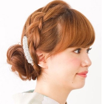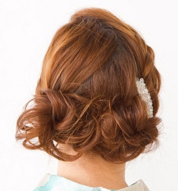 | Vòng lọn tóc tết từ phía trước ra phía sau, vòng qua búi tóc vừa tạo. |