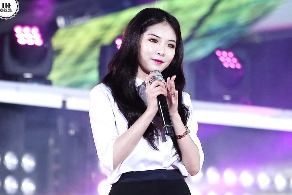 | Sohee cũng khá trung thành với kiểu tóc thẳng và để ngôi giữa. Tuy nhiên, gương mặt bầu bĩnh giúp cựu thành viên nhóm Wonder Girls trông vẫn rất trẻ trung dù để kiểu tóc này. |