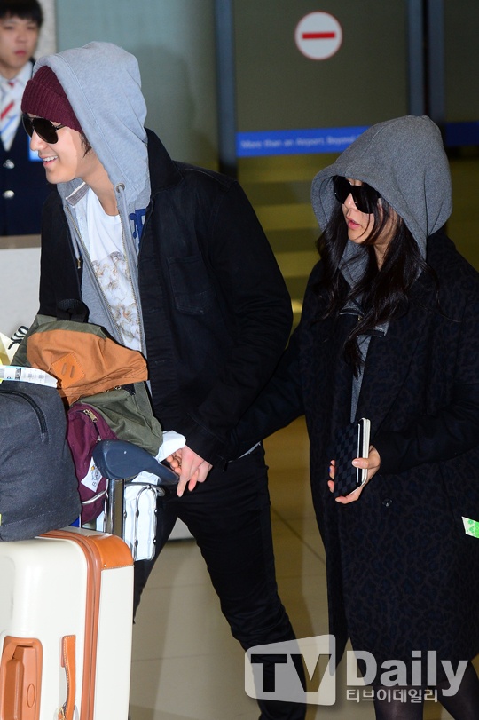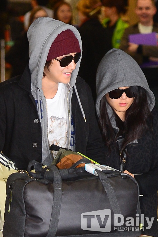 Trong khi Kim Bum rạng rỡ, không giấu niềm hạnh phúc và thể hiện rõ sự "manly" bằng cách nắm chắc tay bạn gái tự tin đi giữa những chiếc máy ảnh đang hướng về phía mình thì Moon Geun Young e ấp bên "chàng phi công" và có vẻ không mấy thoải mái vì bị "soi mói".