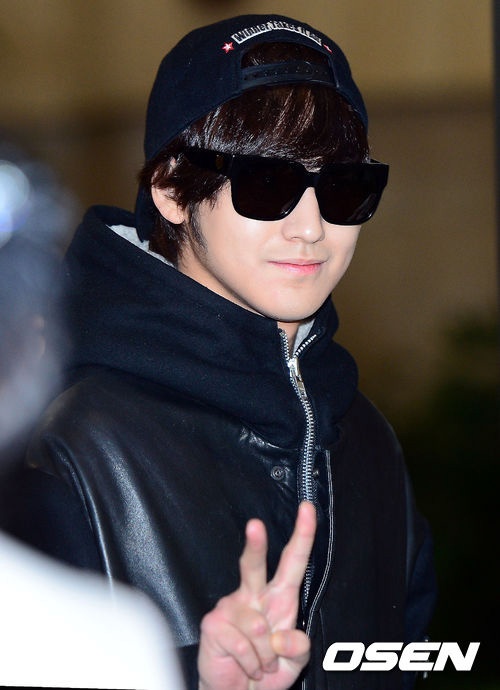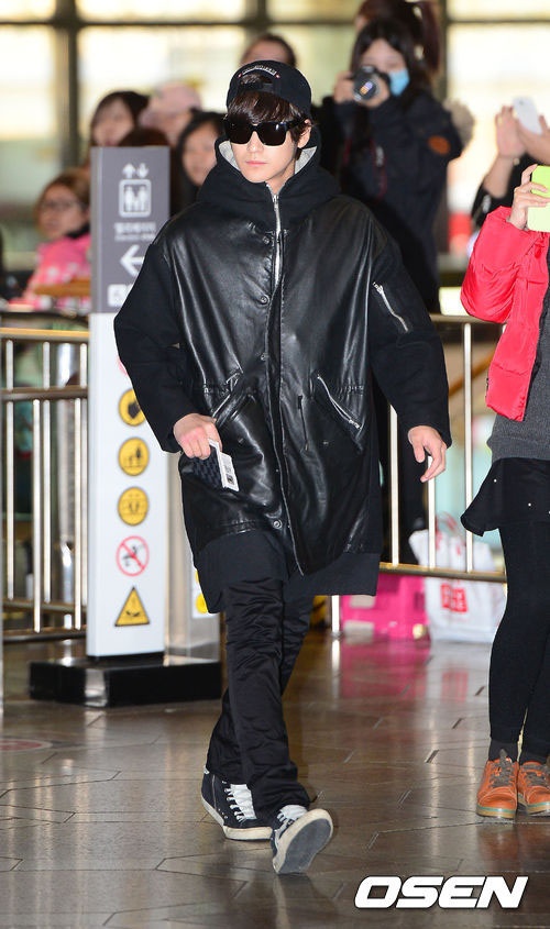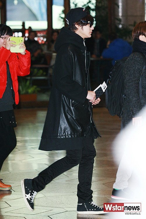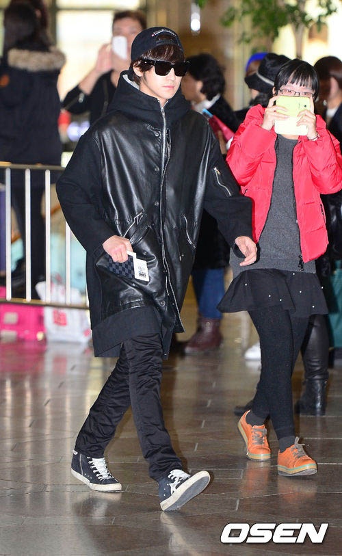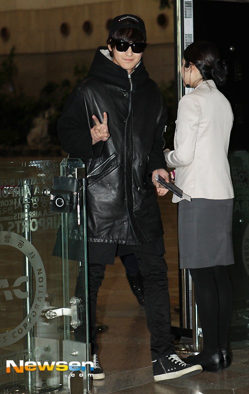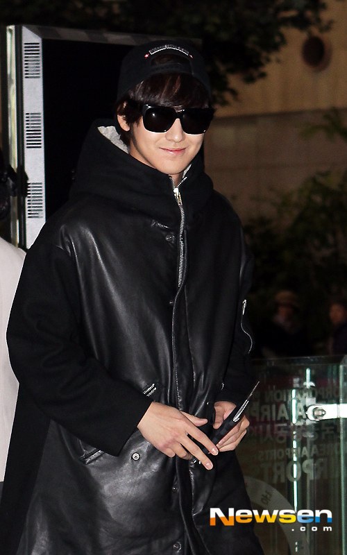 Sau lượt du lịch dài ngày cùng người yêu Moon Geun Young ở châu Âu, chiều nay (29/11), Kim Bum đã xuất phát lên đường sang Nhật để quảng bá cho bộ phim That Winter, the Wind blows. Diện áo khoác da dáng dài màu đen, giày thể thao khỏe khoắn, trông Kim Bum rất phong cách và không kém phần "bụi phủi". Tuy đeo kính đen để tránh sự chú ý của nhiều người nhưng khi thấy ống kính của phóng viên và sự đón chào của người hâm mộ, Kim Bum vẫn nở nụ cười vô cùng thân thiện.