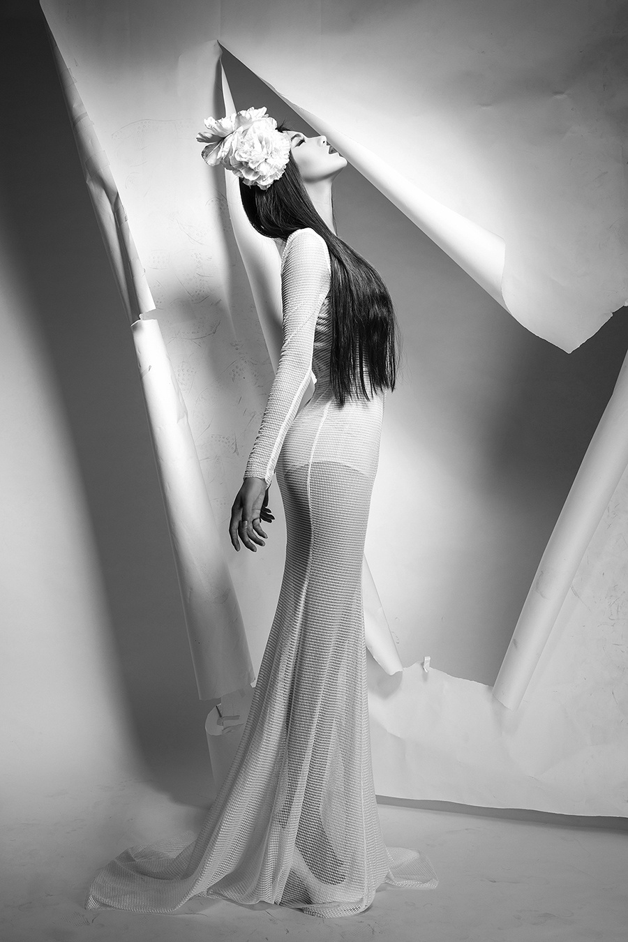 | Những thiết kế váy ôm sát, chất liệu ren lưới xuyên thấu, để lộ thân hình quyến rũ của nữ người mẫu. Cô tự tin tạo dáng cuốn hút trong bộ cánh hiện đại, hợp xu hướng. |