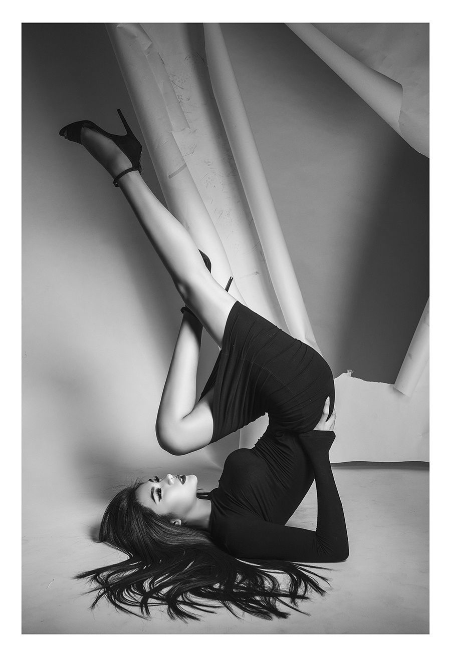 | Vóc dáng hoàn hảo giúp người đẹp tự tin khi sáng tạo những động tác khó. |