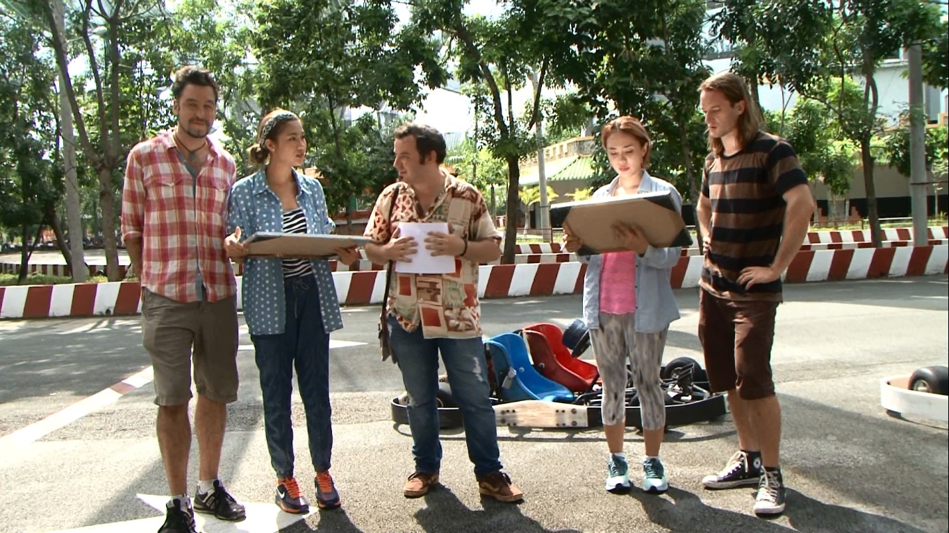 | Đặc biệt ở vòng thi đua xe F1, trục trặc với chiếc xe đua nhưng Lan Trinh vẫn hài hước: “Xe của tôi không bám đường, lấy tốc độ rất chậm, đạp ga lấy tốc độ chậm hơn, chắc là xui...”. Còn cô nàng Kim Dung tỏ ra khá thích thú với thử thách này và thể hiện khá nhanh nhẹn, cô hào hứng: “Có một chỗ chị Trinh ép và đụng xe để em khỏi qua, nhưng tay lái em cứng và chắc lắm”. |