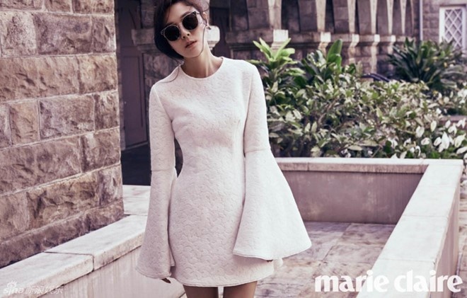 Nét quyến rũ của nữ diễn viên Hàn Quốc trong chiếc váy dáng xòe tay điệu đà.