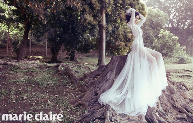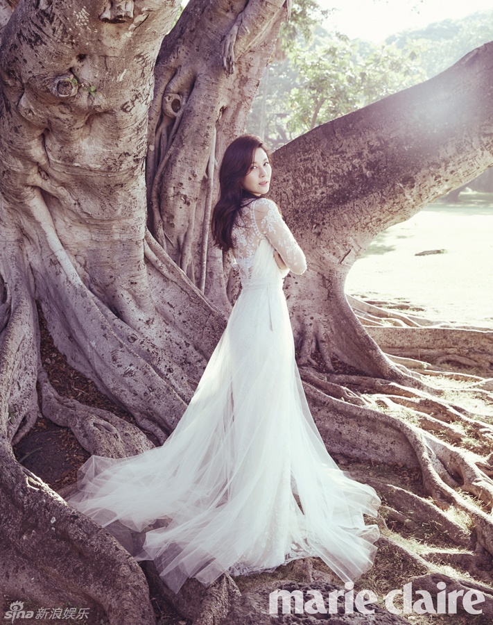 Kim Ha Neul tới Hawaii vào cuối tháng 1 để thực hiện bộ ảnh mới và chụp ảnh cưới. Trên ấn phẩm Marie Claire số tháng 3, kiều nữ Hàn Quốc lần đầu mặc váy cưới, đội voan trùm cô dâu.