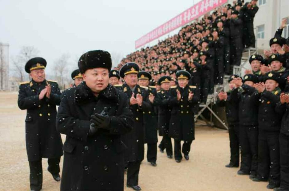 Tuyết phủ trên mũ vào áo nhà lãnh đạo Kim Jong Un trong chuyến thị sát ngoài trời.