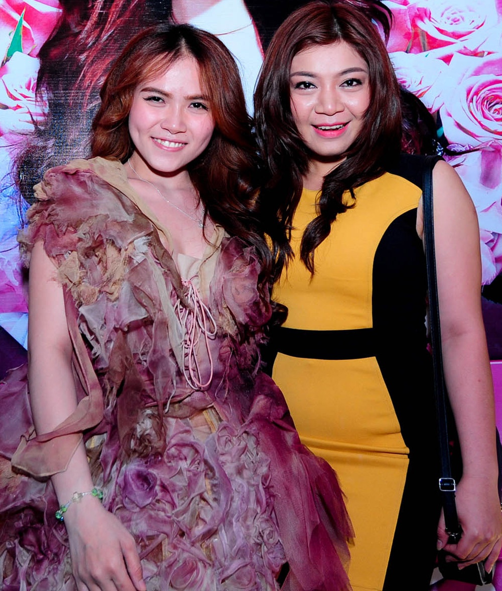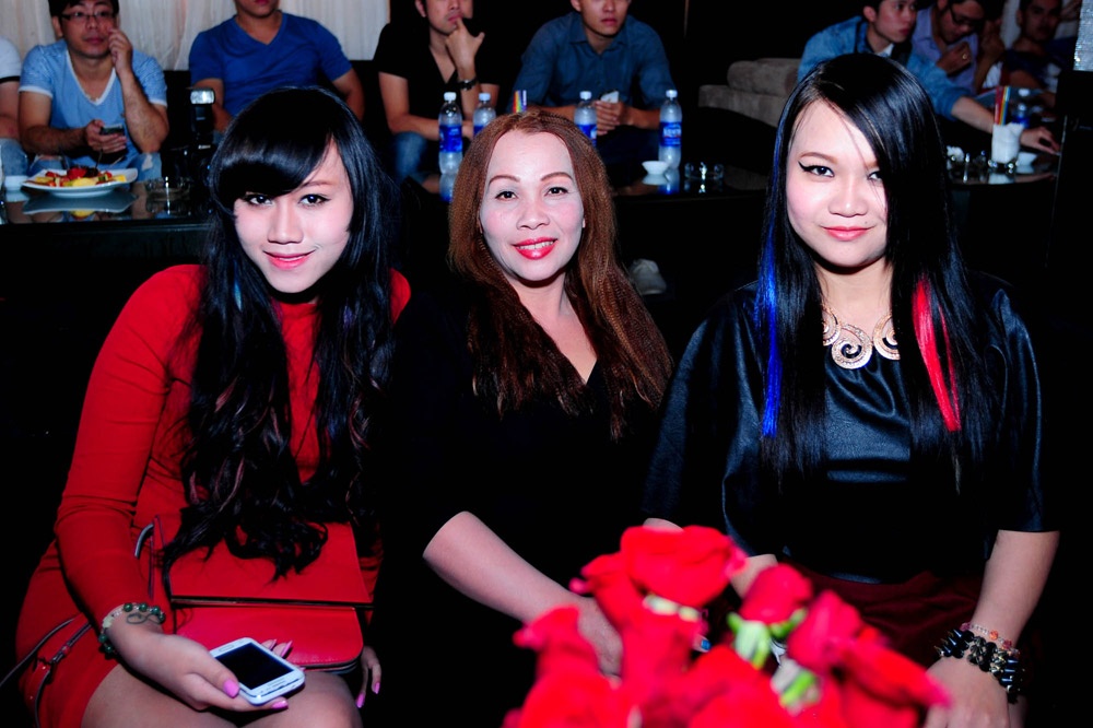 Hai chị gái Kim Loan và Hoàng Oanh đội Hồng Nhung trong buổi ra mắt sản phẩm của em gái.