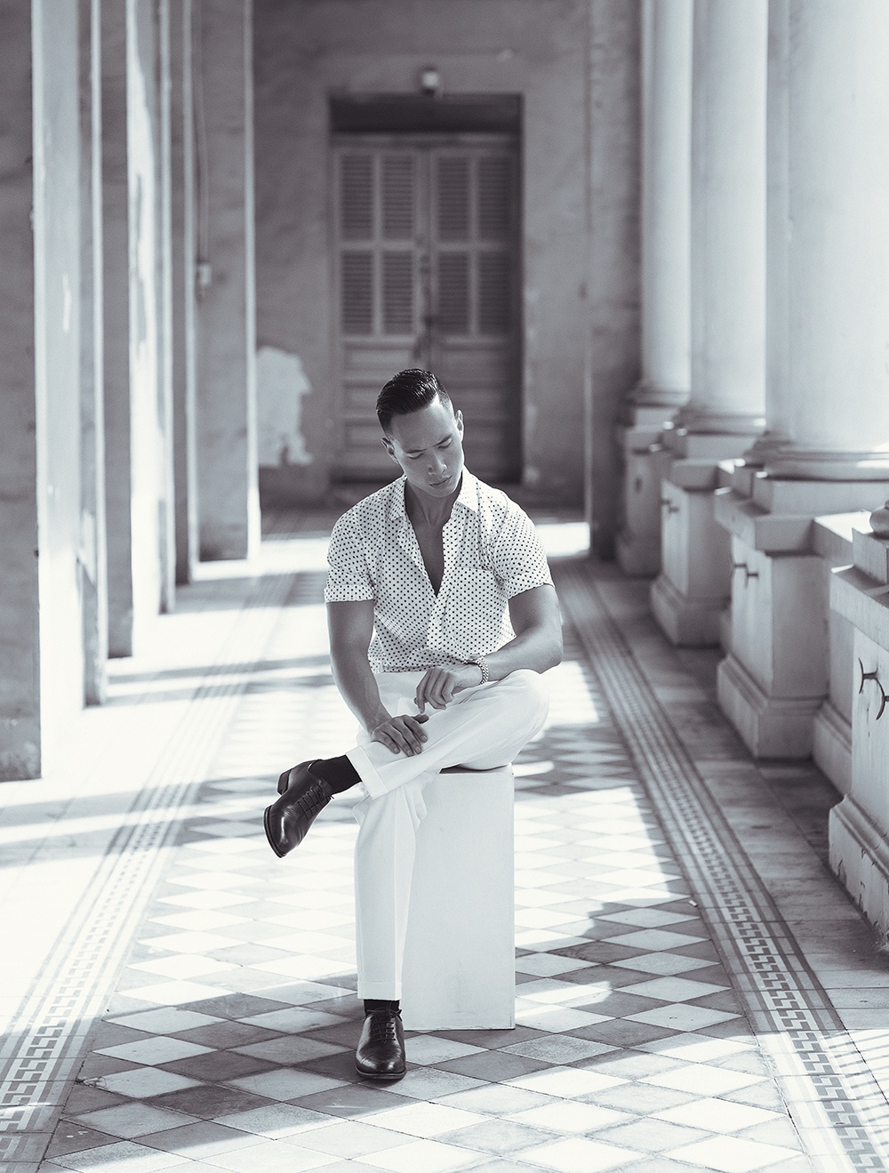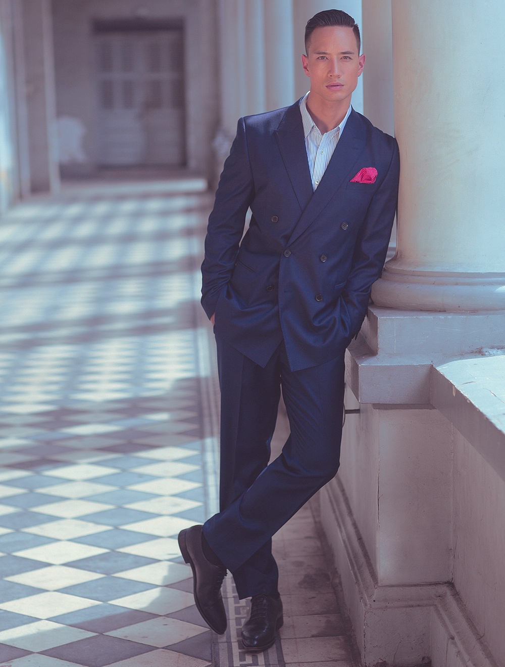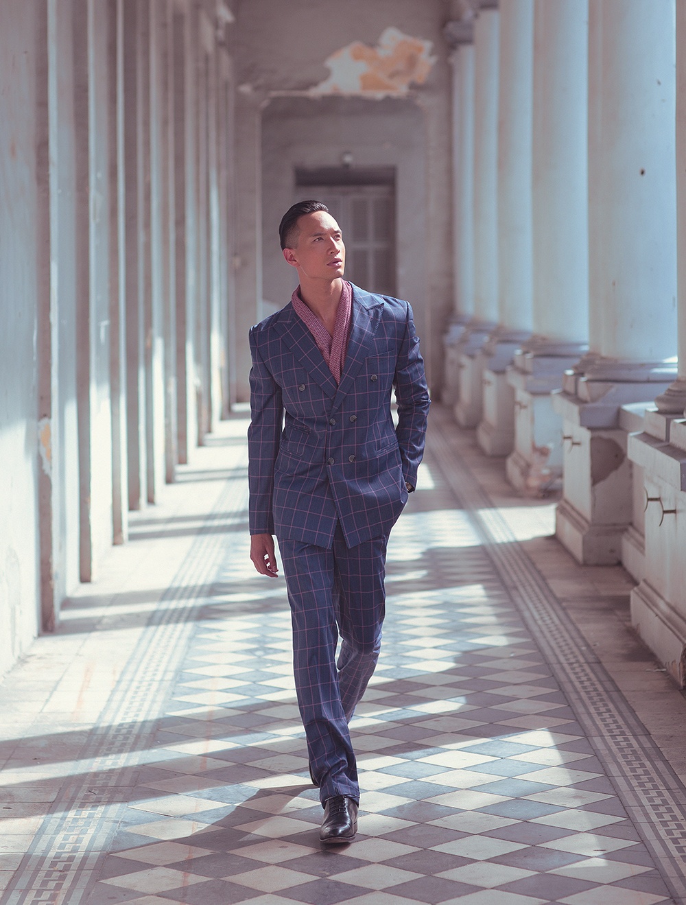 Nam diễn viên sinh năm 1983 khoe lợi thế vóc dáng lý tưởng trong những bộ suits tông màu trầm hoài cổ và lãng mạn.
