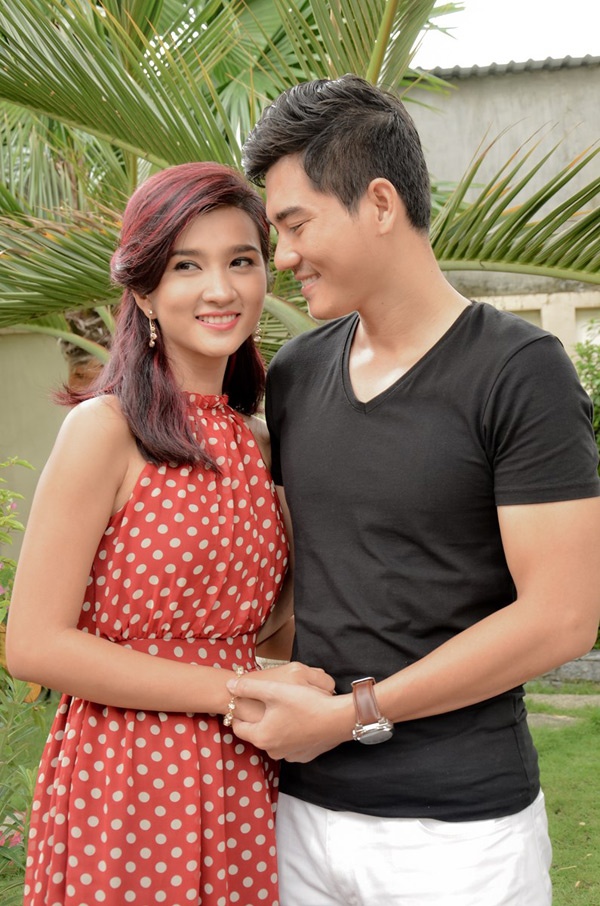 | Đáp lại, Kim Tuyến bẽn lẽn, hạnh phúc trong vòng tay anh chàng điển trai này. |