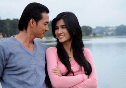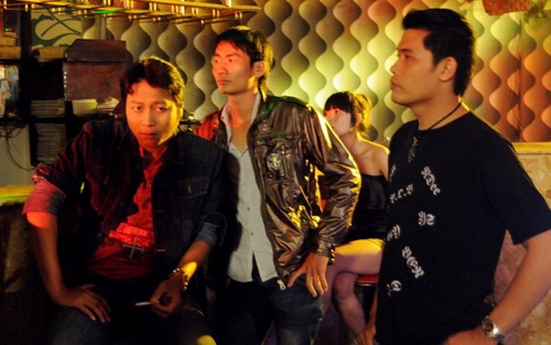 | Kim Tuyến và Quang Tuấn trong cảnh quay kết phim. |