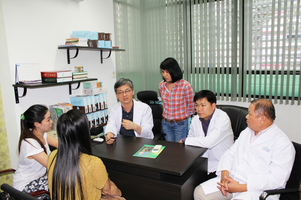 | Khách hàng được trực tiếp bác sĩ Man Koon Suh - Viện trưởng bệnh viện JW Hàn quốc, bác sĩ Nguyễn Phan Tú Dung, bác sĩ Nguyễn Văng Việt Hảo tư vấn. |