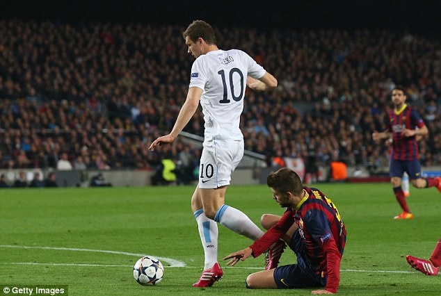 | Theo Kompany, Man City xứng đáng được hưởng phạt đền sau tình huống Pique phạm lỗi với Dzeko. Ảnh Getty Images. |