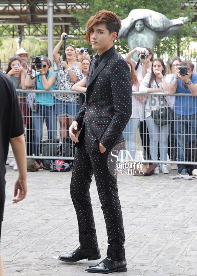 | Tham dự tuần lễ thời trang nam đang diễn ra ở Paris, Kris liên tục có những màn lột xác khiến fan thích thú. Trước đó, chàng ca sĩ 9x gây chú ý với mái tóc giả dài màu tím dài thướt tha. Và mới đây, Kris lịch lãm với suit khi xuất hiện tại show diễn của Givenchy. |