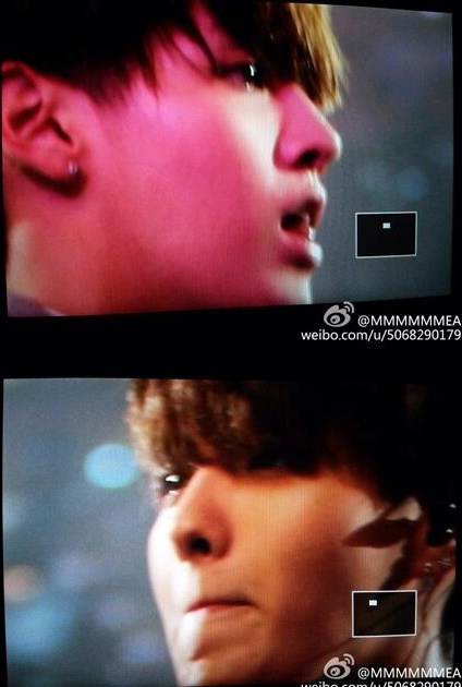 | Hình ảnh được fan khẳng định là nước mắt dâng lên trong đôi mắt của Kris tại show diễn ở Thượng Hải. |