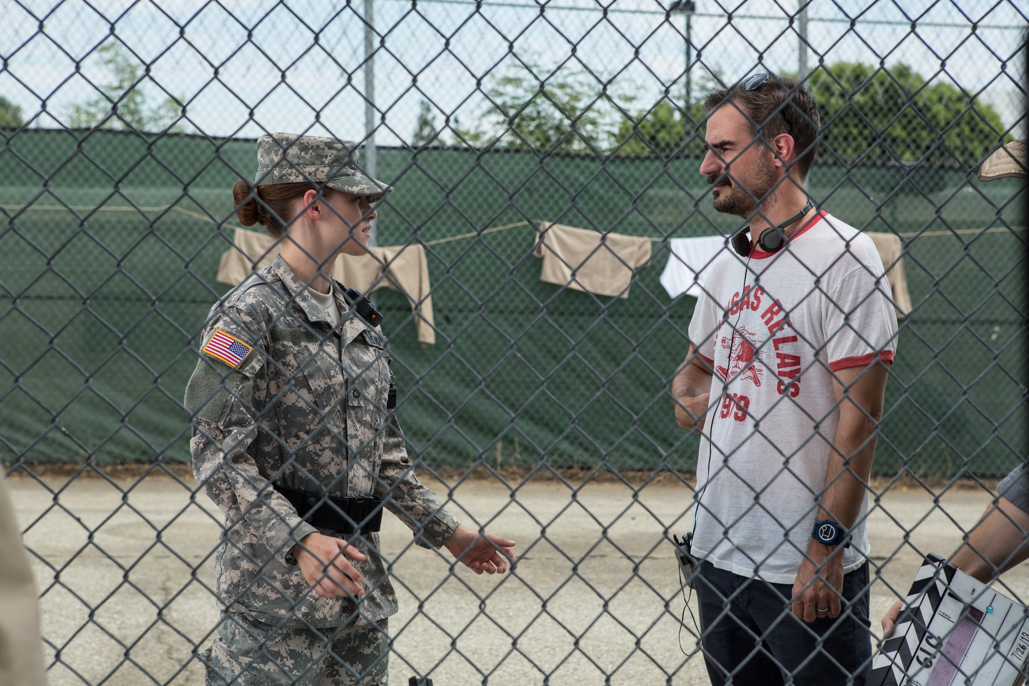 | Kristen Stewart và đạo diễn Peter Sattler trên phim trường Camp X-Ray. |