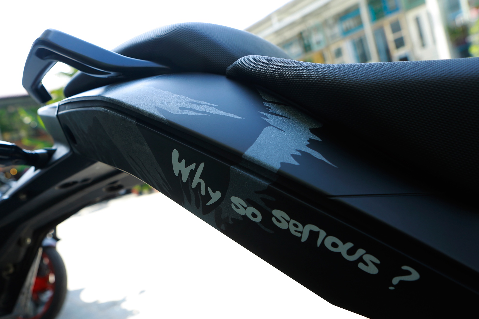 Dòng chữ “Why so serius" trên thân xe thể hiện sự tự do, thoát khỏi những căng thẳng của cuộc sống. |