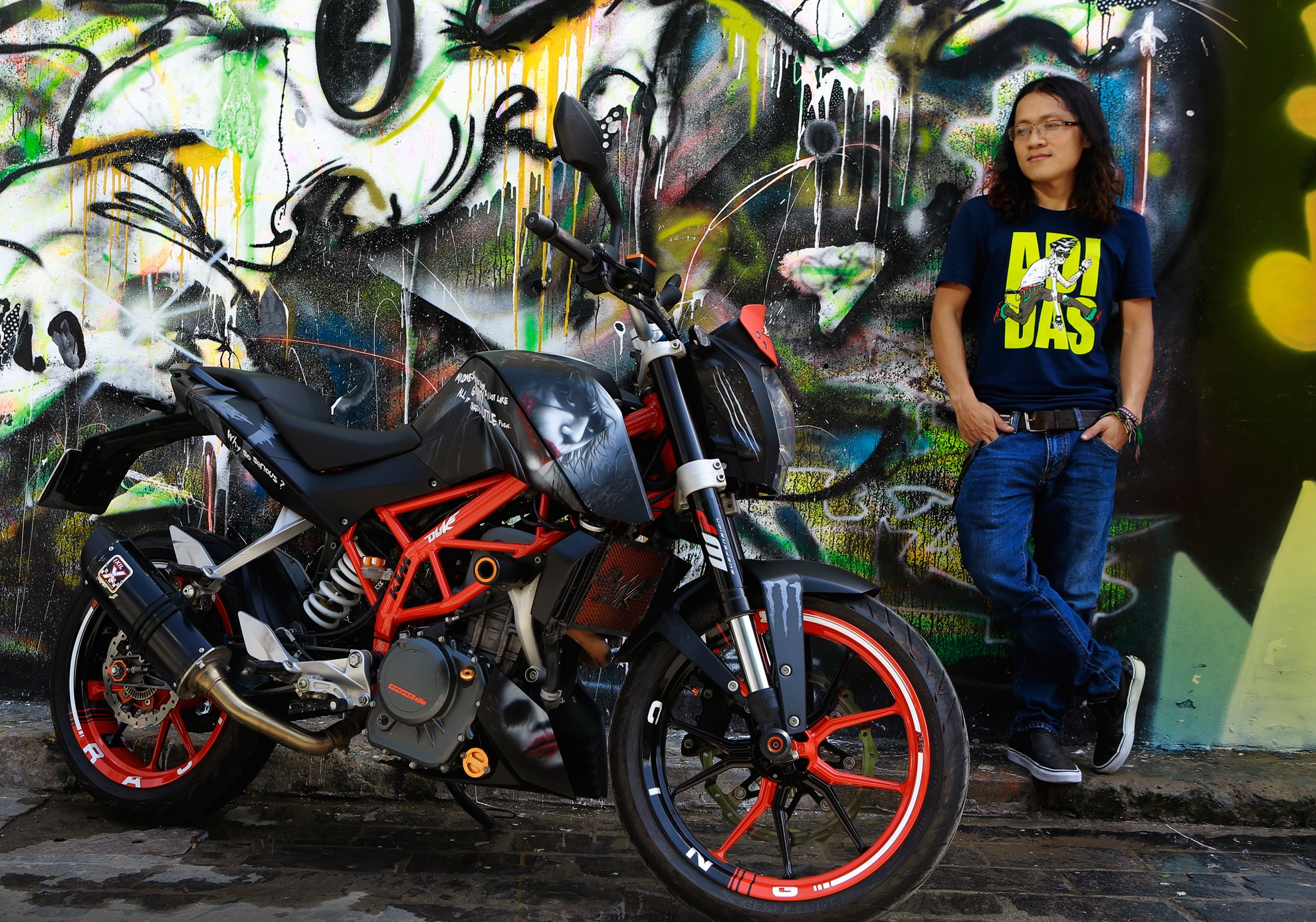 | Chiếc KTM Duke 390 độ phong cách tự do, nổi loạn thuộc sở hữu của một người chơi xe trong hội KTM Sài Gòn. Anh là một người đam mê nghệ thuật, hội họa và là người đầy cá tính. |
