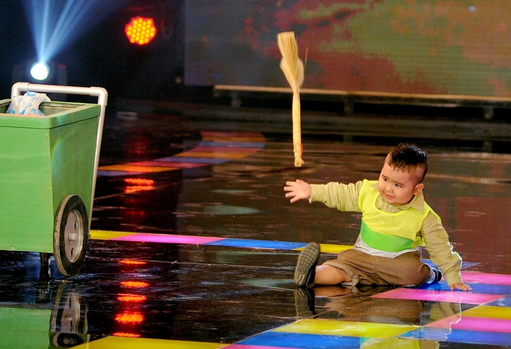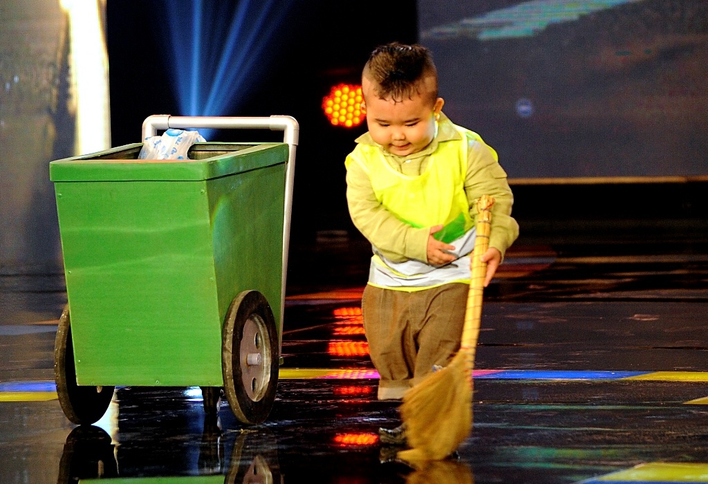 Trong tập 12 của chương trình truyền hình Người hùng tí hon phát sóng tối 16/1, “cậu bé bút chì” Ku Tin Huỳnh Minh Hoàng – thành viên Biệt đội Vui nhộn của đội trưởng Đại Nhân mang đến tiểu phẩm lấy cảm hứng từ công việc của những công nhân vệ sinh. Ngay từ khi bước ra sân khấu, cậu nhóc gây ấn tượng từ trang phục đến đạo cụ là cây chổi và chiếc xe đẩy rác khá cồng kềnh.
