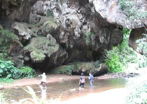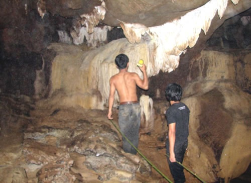 | Hang Pa Don kéo dài hàng trăm mét trong lòng núi với những nhũ đá vô cùng đặc sắc. |