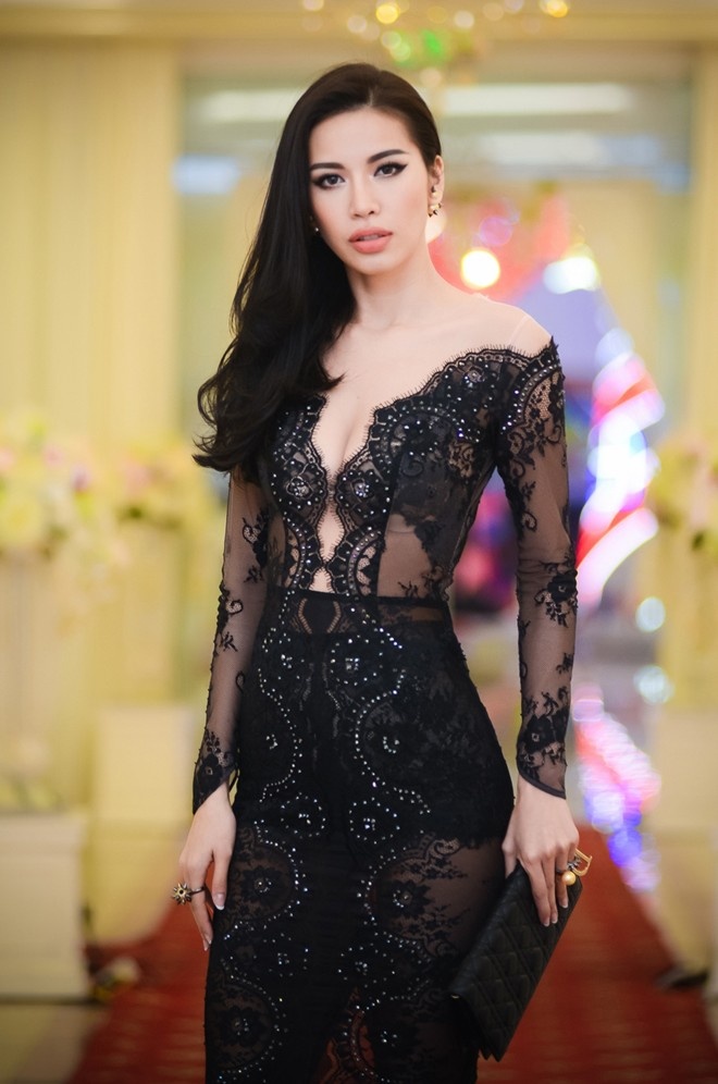 | Trong khi đó, hoa hậu Thùy Dung diện đầm ren sang trọng của Hoàng Hải dự sự kiện tại TP HCM. Người đẹp gốc Đà Nẵng được khen ngợi về vẻ mong manh, nữ tính. Mái tóc suông cùng tông trang điểm nhạt phù hợp trang phục. Ảnh: Alec. |