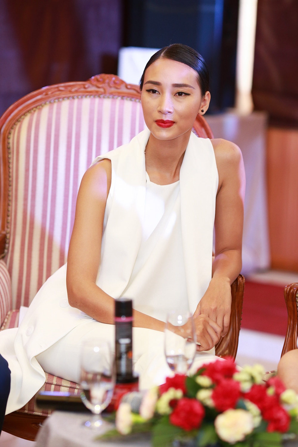 | Tại buổi hội thảo, cô chia sẻ bản thân luôn tự tin với mái tóc dài và thẳng, có thời gian Trang Khiếu từng rất "ngầu" với mái tóc tém, nhưng khi làm việc tại thị trường thời trang thế giới, chính mái tóc dài mới khiến cô ghi điểm trước các nhà thiết kế và các chuyên gia thời trang. |