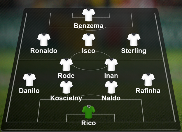 | Trung phong Karim Benzema (Real Madrid): Benzema đã vượt qua đồng hương Olivier Giroud để giành vị trí cao nhất trên hàng công. Cũng lập hat-trick như tiền đạo Arsenal, nhưng Benzema có phần nổi bật hơn khi mở ra cơ hội 2 lần và đạt tỷ lệ chuyền chính xác 91%. |