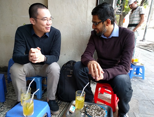 Hà Đông cùng CEO Google trong buổi gặp gỡ . |