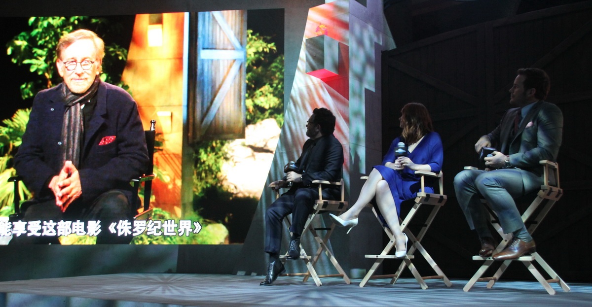 Chris Pratt, Bryce Dallas Howard và đạo diễn Colin Trevorrow vừa có mặt tại Trung Quốc để chia sẻ về quá trình thực hiện bom tấn "Jurassic World" sắp ra mắt.