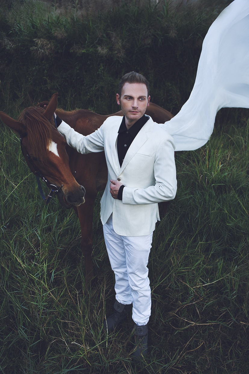 Đồng thời, nam ca sĩ cũng gửi tới các fan bộ ảnh thời trang chào mừng xuân Giáp Ngọ. Người "bạn diễn" đặc biệt của Kyo York trong bộ ảnh này chính là một chú ngựa.