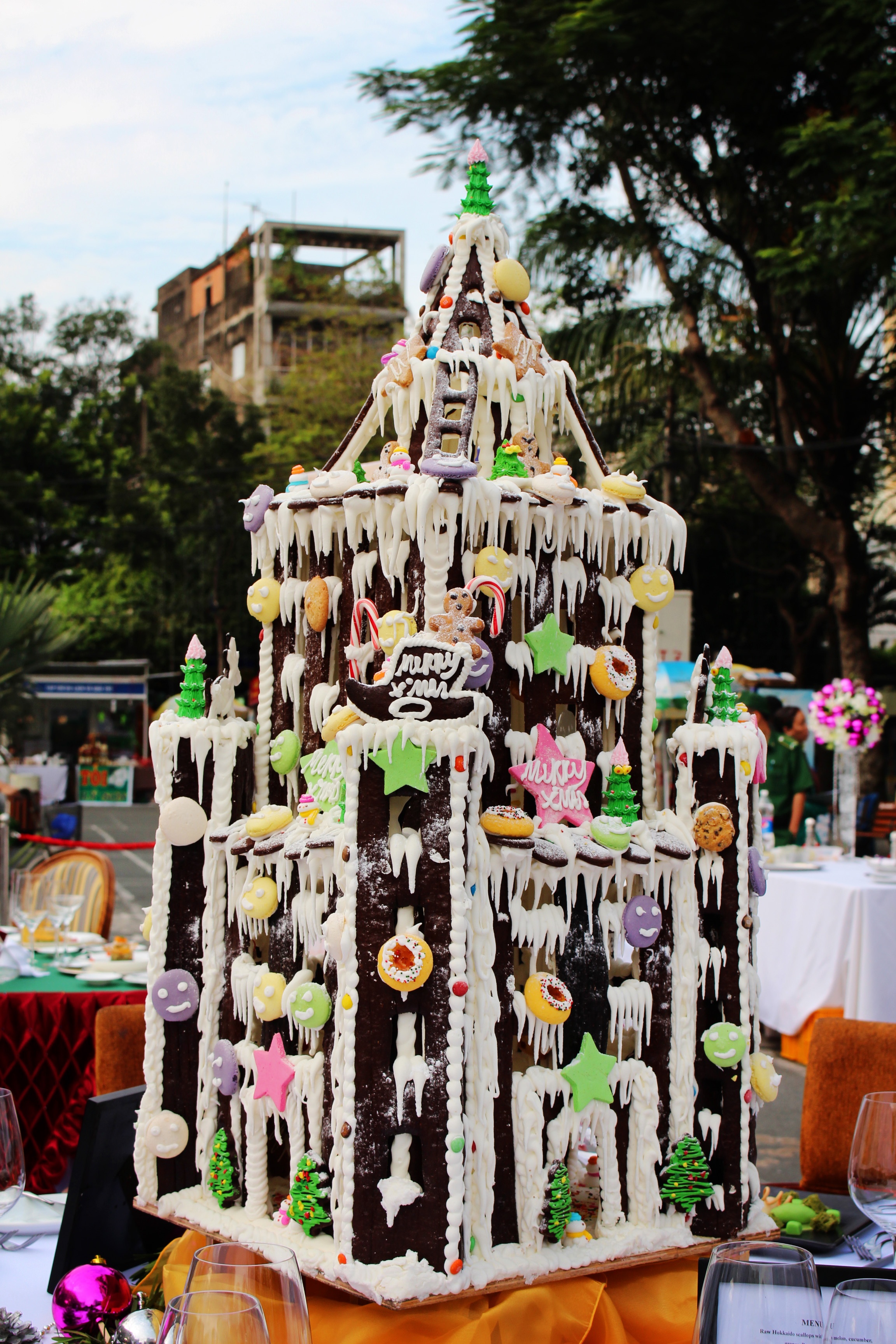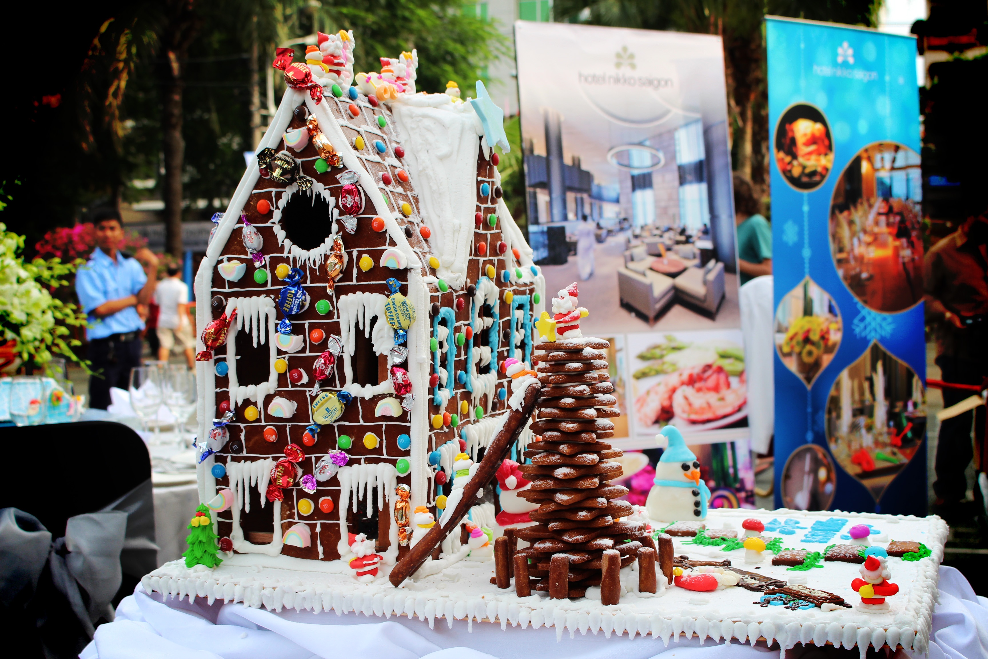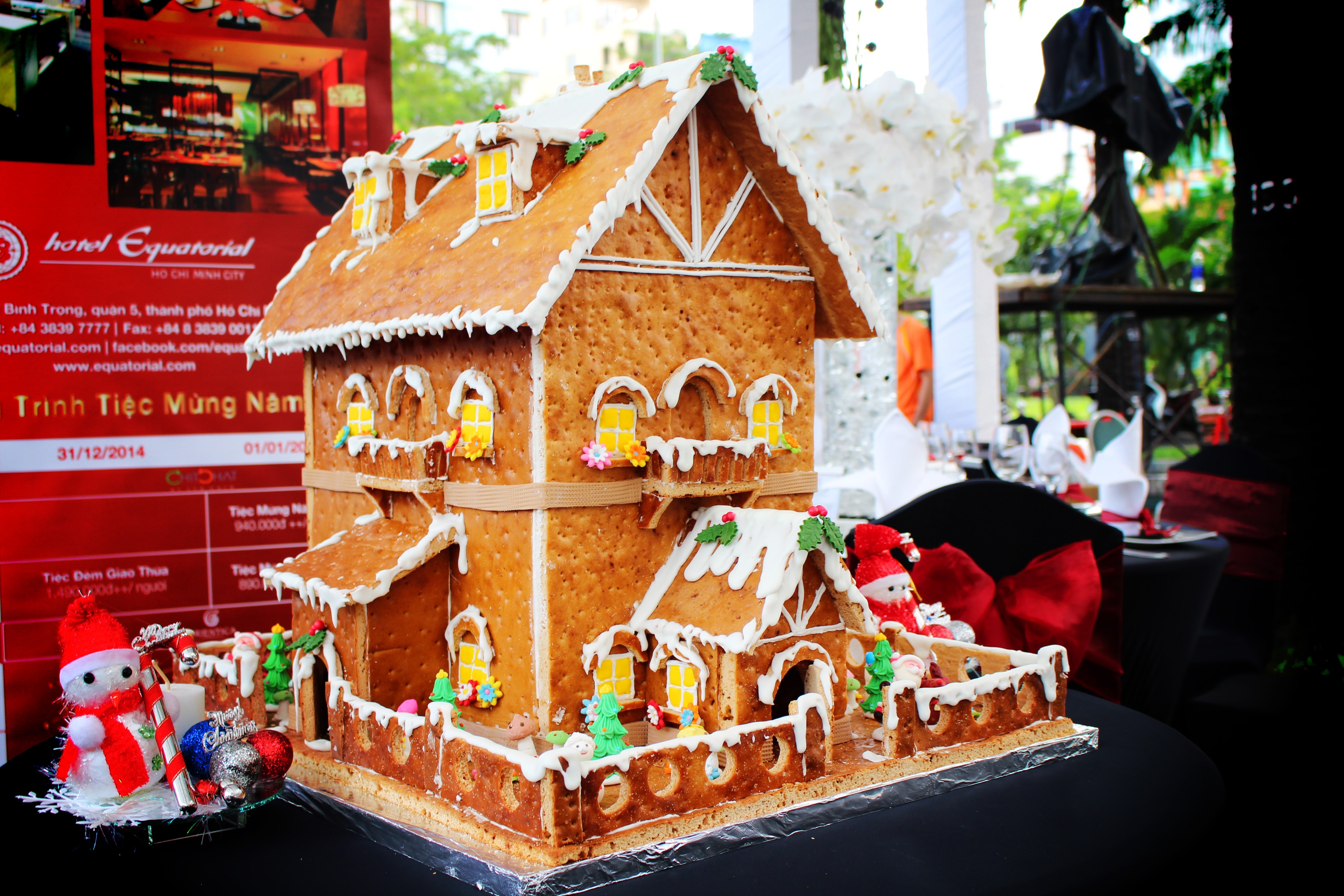 | Bên cạnh các công trình nổi tiếng ở Sài Gòn, các khách sạn tham gia cuộc thi cũng "xây dựng" hàng loạt ngôi nhà bánh quy tuyệt đẹp và độc đáo. Trong hình là tác phẩm dự thi của khách sạn Equatorial. |