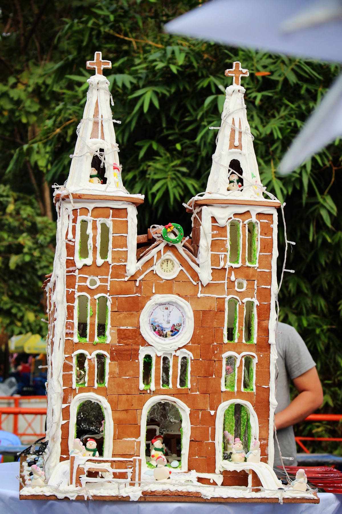| Nhiều thực khách tham quan tròn mắt trước những kiến trúc tuyệt đẹp của Sài Gòn và Hà Nội được các đầu bếp tái hiện tuyệt đẹp bằng bánh quy gừng, chocolate, đường và các loại kẹo tại Lễ hội Món ngon các nước diễn ra từ ngày 4/12 tại khu B công viên 29/3 ở TP.HCM. Nhà thờ Đức Bà tuyệt đẹp sở hữu hàng loạt kỷ lục Việt Nam cũng bắt mắt không kém nhờ không chỉ tái hiện sắc xảo đến từng chi tiết hình mẫu bên ngoài của nhà thờ. |