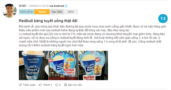 Với ly lớn giá 22.000, ly nhỏ giá 17.000 đồng, chỉ sau 2 tuần khai trương, Red Bull Tuyết là chiếm vị trí sản phẩm Tuyết bán chạy nhất tạị chuỗi cửa hàng Circle K.
