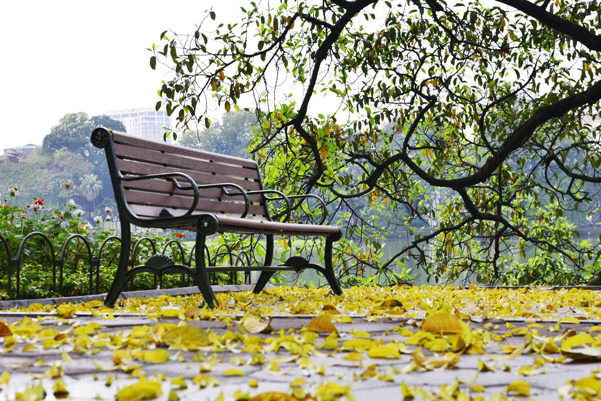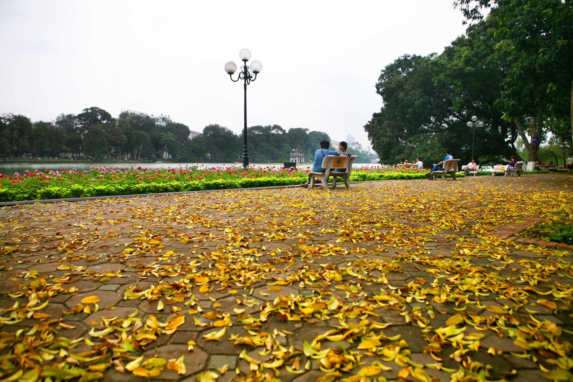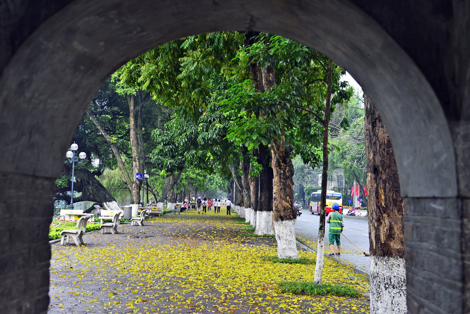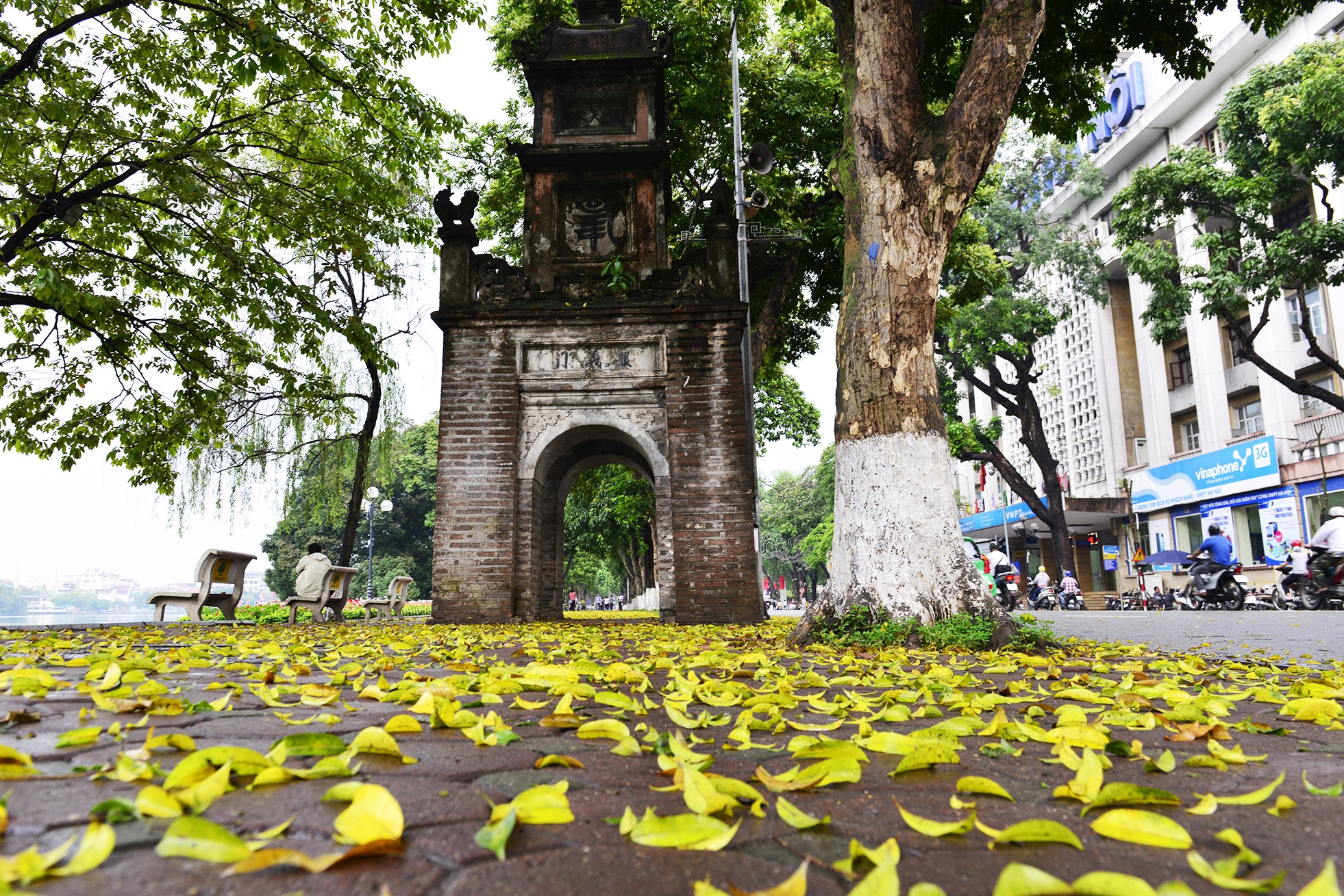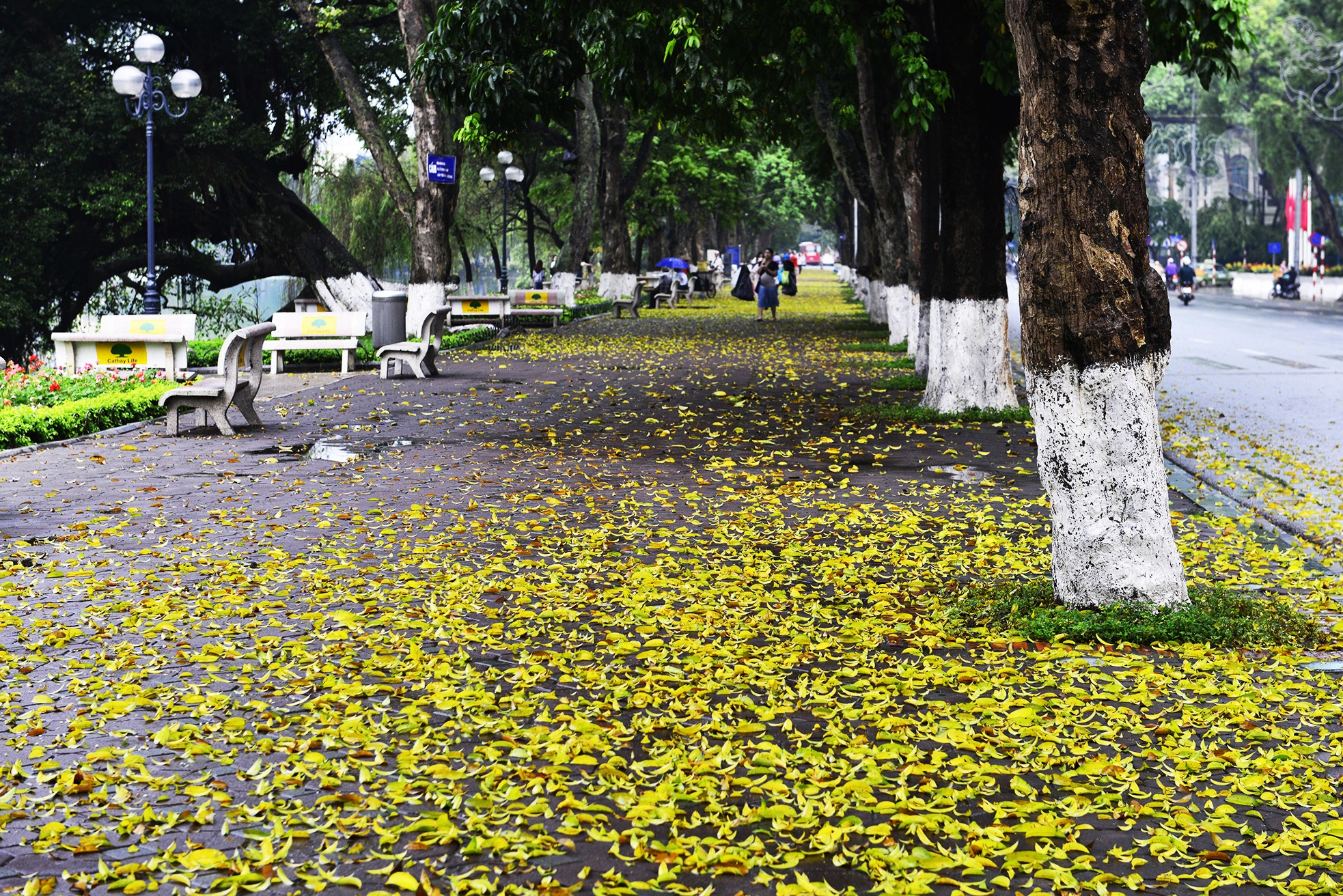 Năm nay, khu vực xung quanh hồ Hoàn Kiếm, dọc phố Đinh Tiên Hoàng cũng xuất hiện những thảm lá vàng rực.