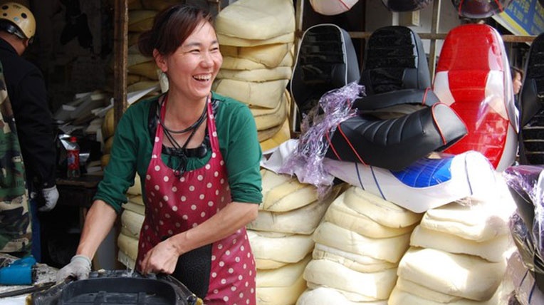 Cô Lee đã làm một chiếc yên mới cho xe của Sam. Cô chỉ tay về dây chuyền mút và những tấm giả da trong nhà xưởng và nói: "Chúng tôi làm việc này được khoảng 20 năm rồi. Mẹ tôi ngồi ngoài kia". Một phụ nữ lớn tuổi ló mặt ra từ đống vật liệu đang được lựa chọn và mỉm cười. Bà Lee chỉ tay vào chiếc yên sau, màu đen pha da báo nói: "Loại đó đang được ưa chuộng".