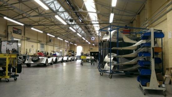 Nhà xưởng phân thành các khu để thuận tiện cho việc sản xuất. Mỗi chiếc xe Morgan đều cấu thành từ ba loại vật liệu thiên nhiên cốt lõi: Gỗ, nhôm và da. Chúng qua tay của 150 nghệ nhân sau thời gian trung bình 6 tháng.