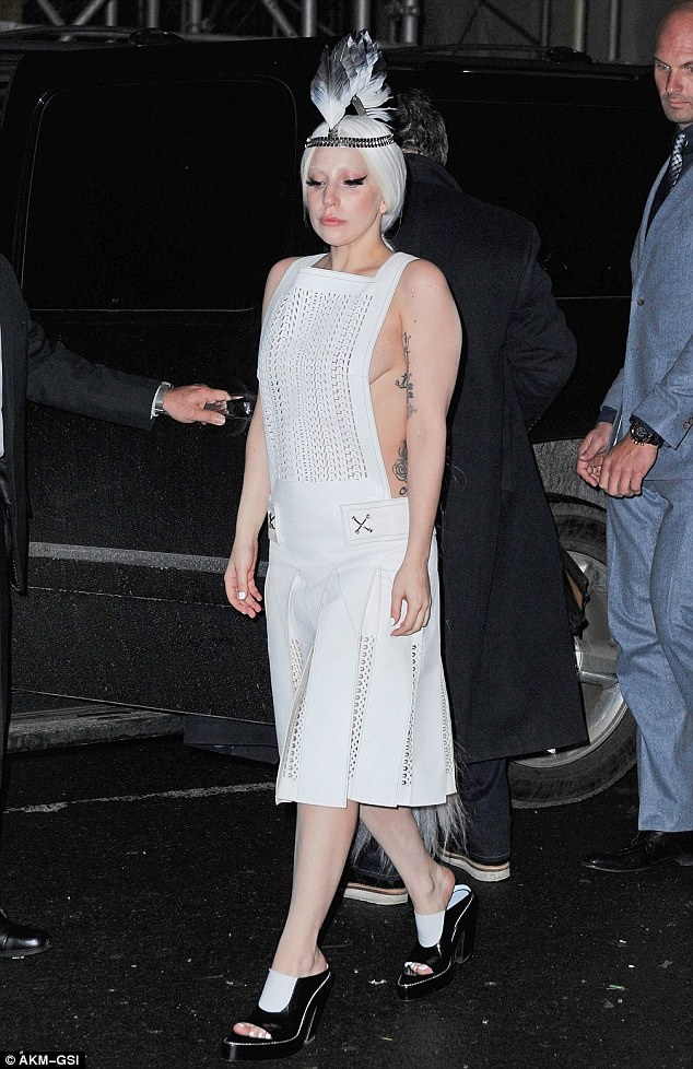 Tối 18/2, cánh săn ảnh bắt gặp nữ ca sĩ Bad romance ra ngoài ăn tối trên đường phố New York. Nhiệt độ tại Mỹ lúc này rơi vào khoảng 30 độ F tương đương với dưới 0 độ C song Lady Gaga vẫn "dũng cảm" diện chiếc váy trắng độc nhất vô nhị.