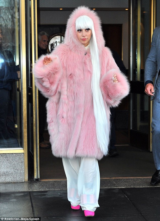 Trước đó, Lady Gaga thu hút sự chú ý của người hâm mộ và cánh săn ảnh khi xuất hiện trên phố với chiếc áo lông màu hồng nổi bật.
