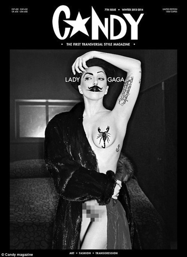 | Mới đây, Lady Gaga đã xuất hiện trên bìa của tờ tạp chí Candy. Ngôi sao 27 tuổi lại gây sốc khi chụp ảnh trong tình trạng bán nude, để lộ gần hết những bộ phận kín đáo trên cơ thể. Cô mặc áo khoác lông, cho thấy một bên ngực chỉ được che bằng miếng dán hình con bọ cạp. Không những thế, nữ ca sĩ còn gây chú ý vì để lộ cả cơ quan "nhạy cảm" nhất của mình ngay trước ống kính. |