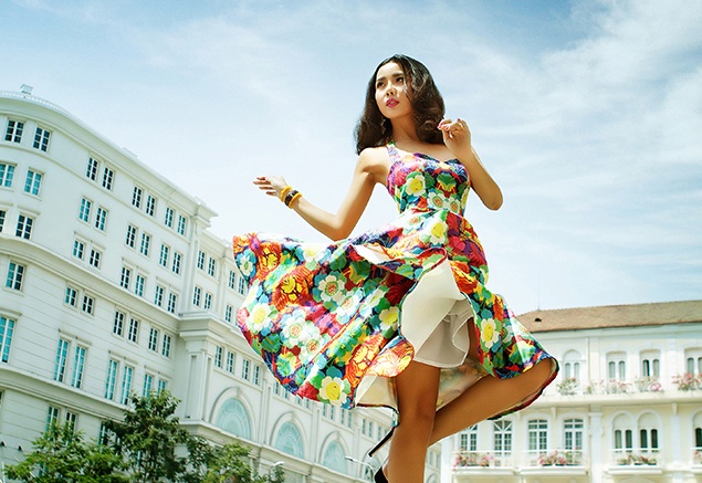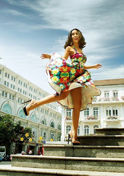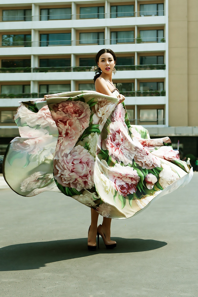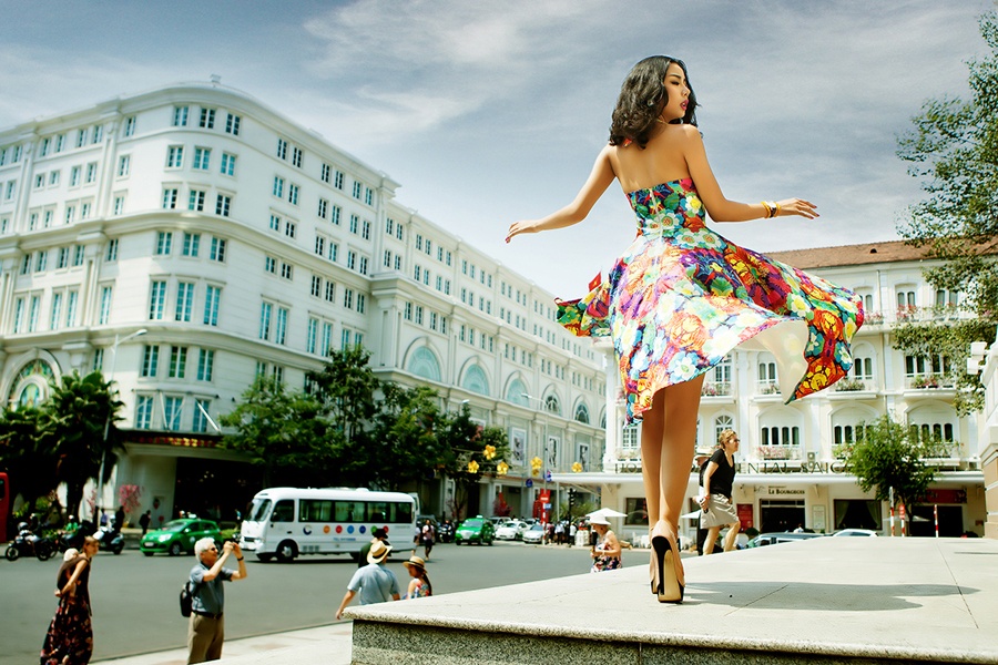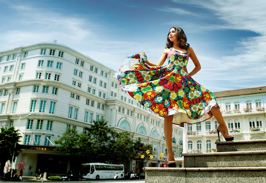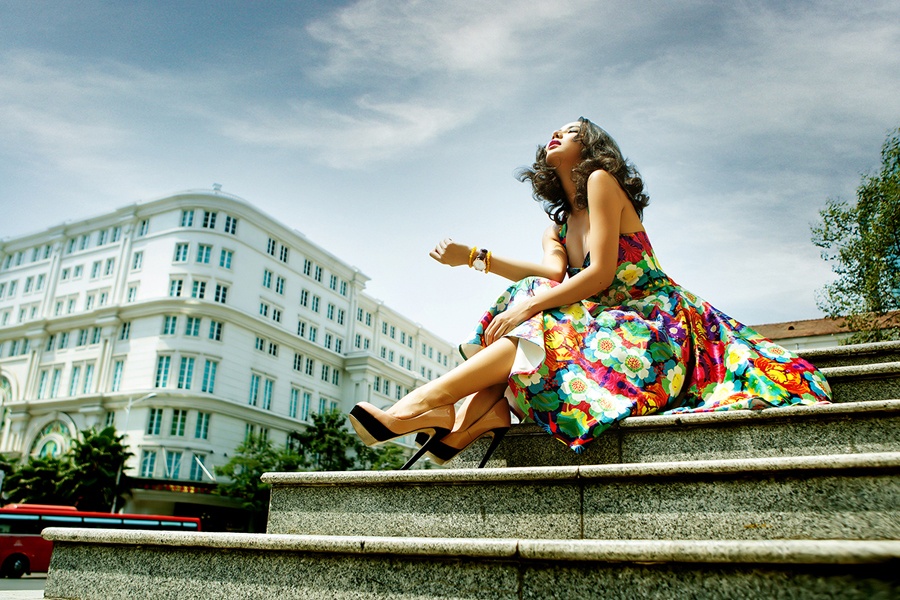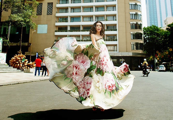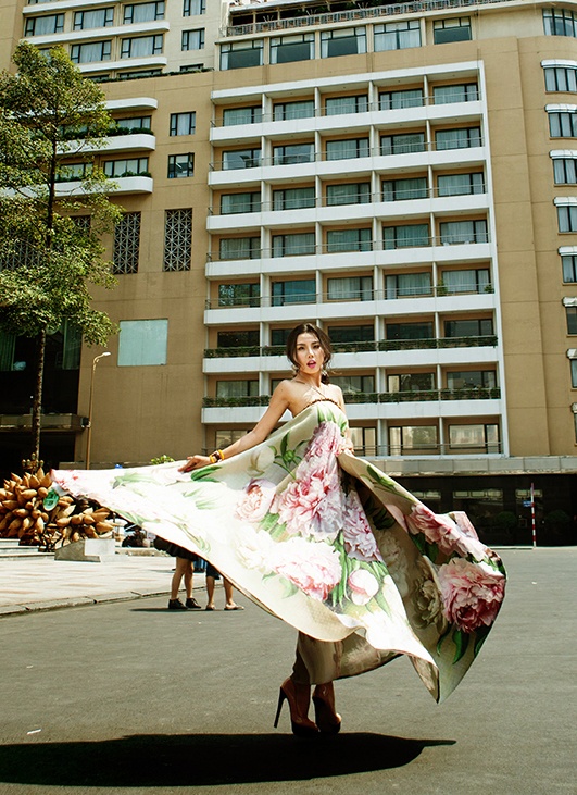 | Người đẹp diện đầm họa tiết hoa rực rỡ, tung tăng trên những con phố tại trung tâm Sài thành. |