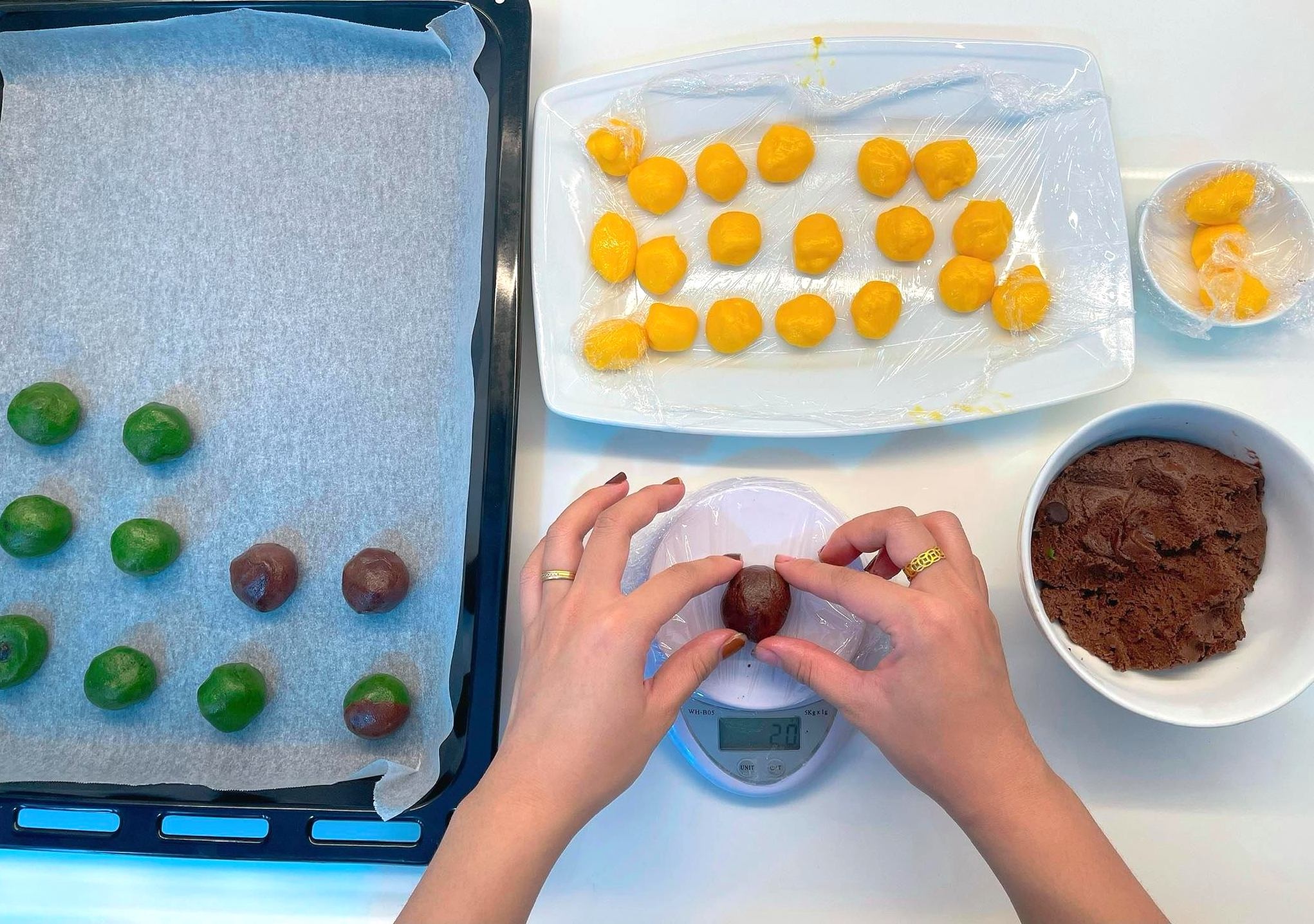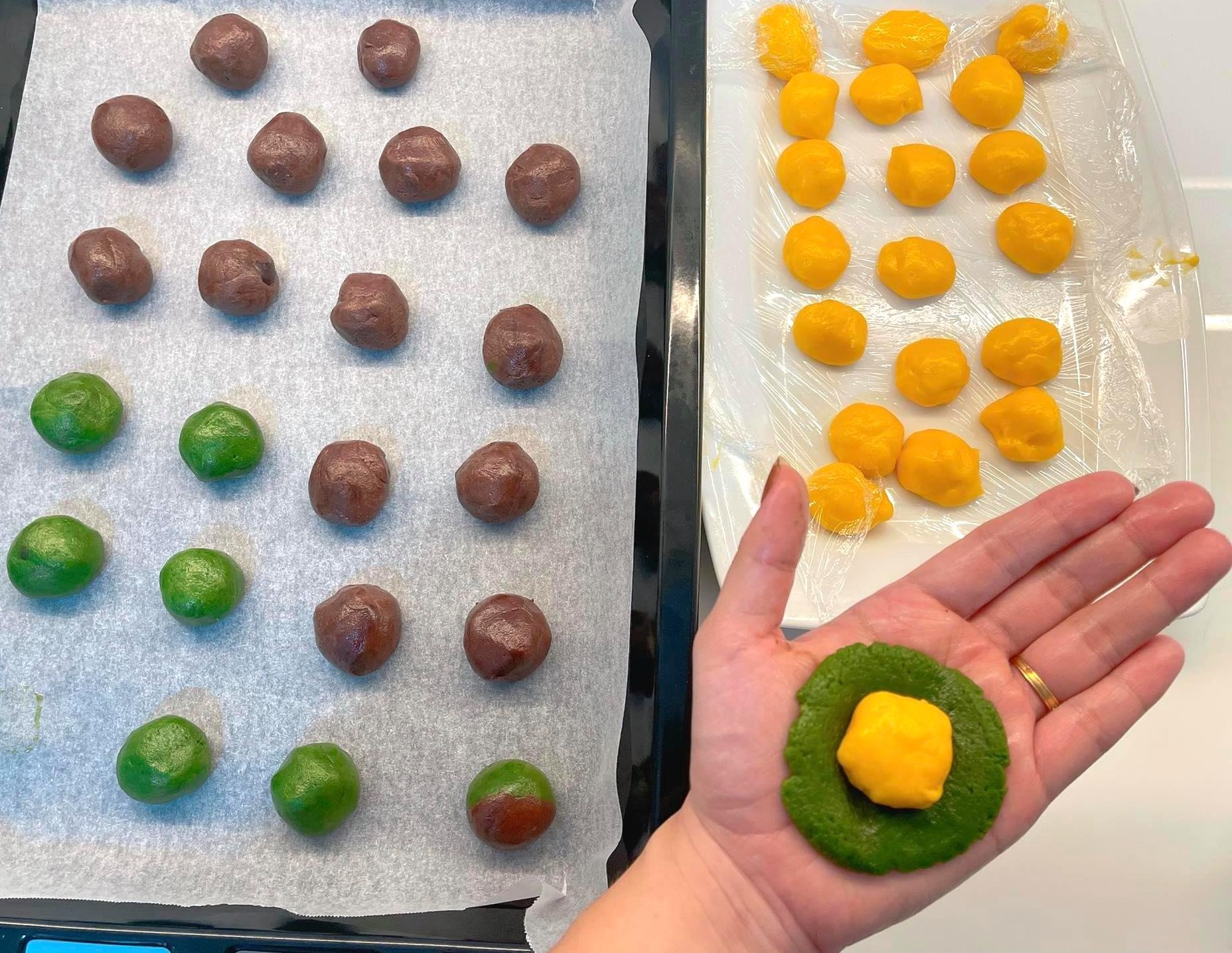 - Vắt bột áo 20 g, vắt nhân bánh 10 g.