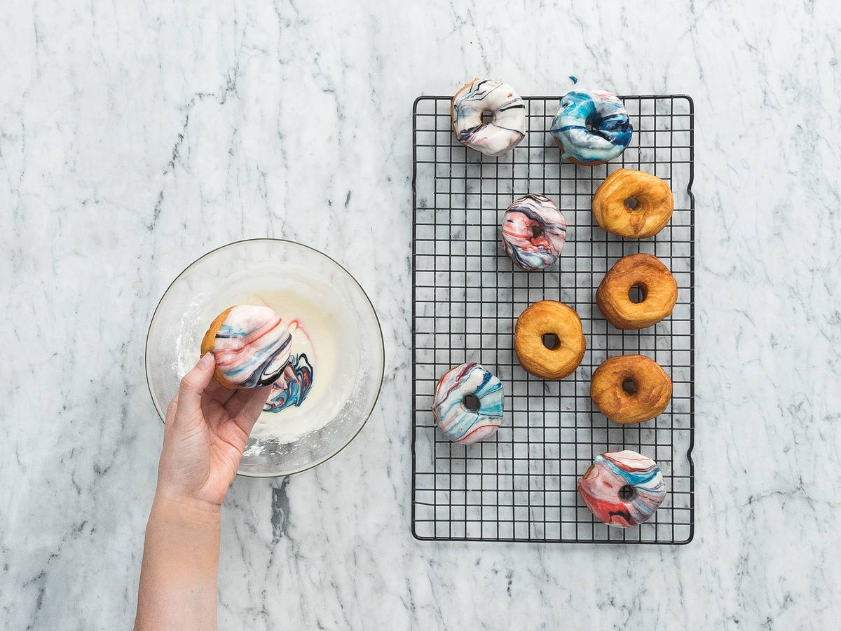 - Nhúng mặt trên của bánh donut vào hỗn hợp trên và đặt nhẹ nhàng trên giá đựng.